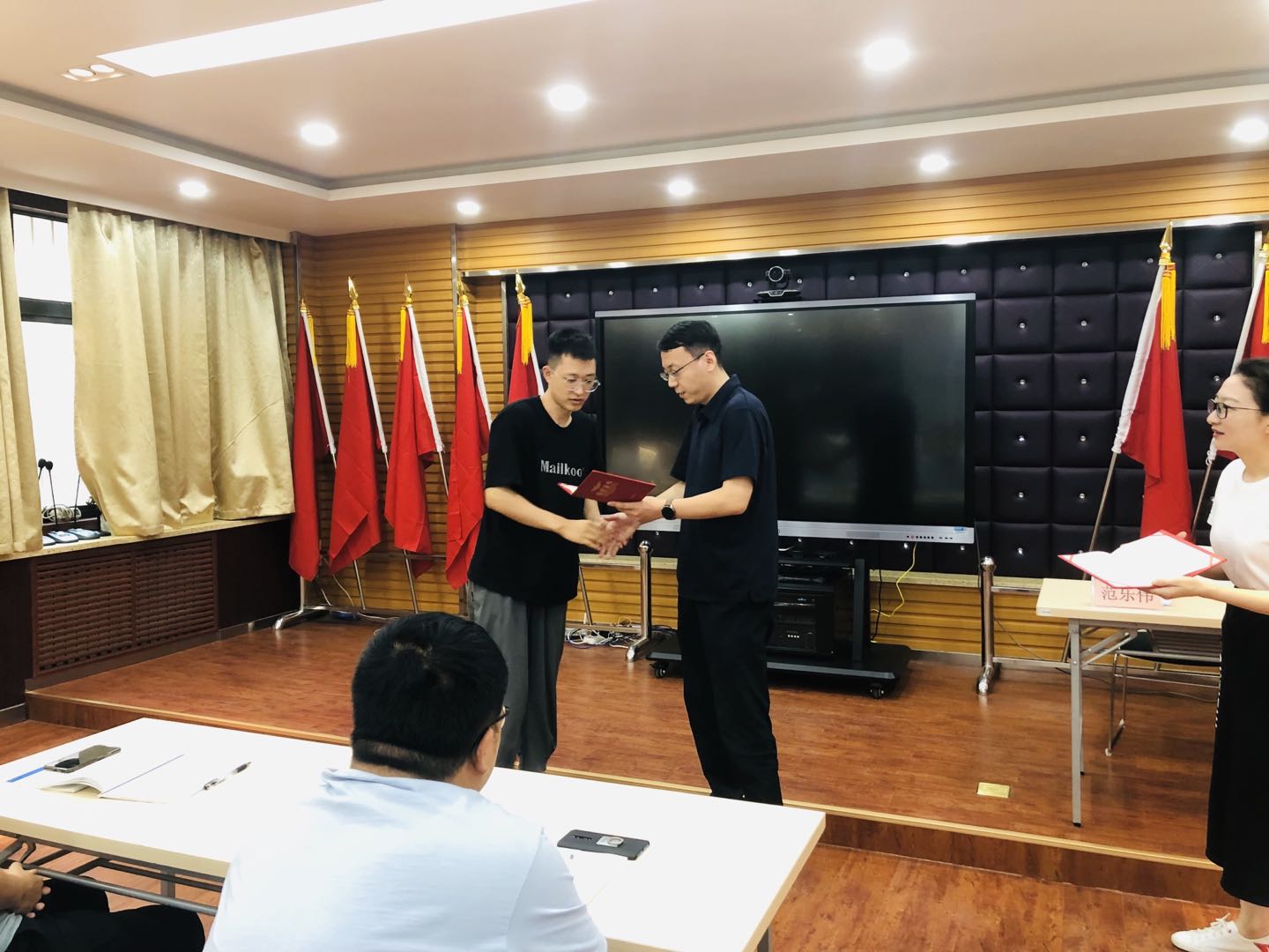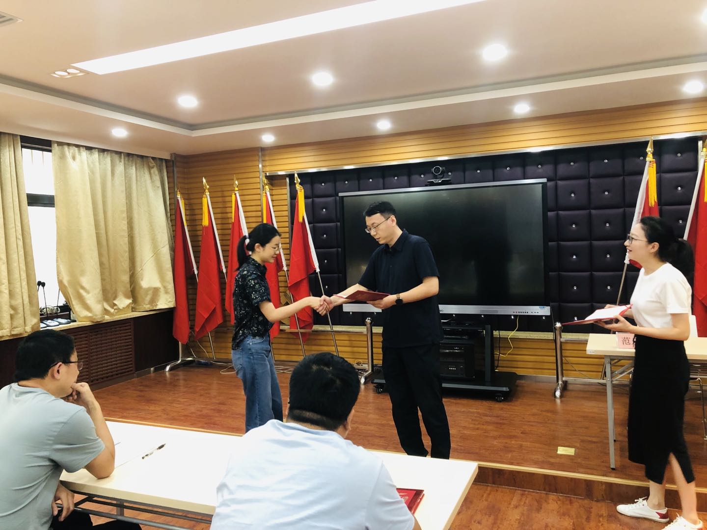 7月16日下午范書記為新入職員工頒發(fā)結業(yè)證書及合影