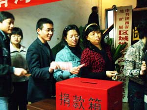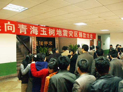 4月19日下午, 區(qū)研院黨委及工會(huì)根據(jù)上級(jí)精神,及時(shí)安排部署向玉樹地震災(zāi)區(qū)捐助活動(dòng)。各分會(huì)認(rèn)真組織動(dòng)員,向大家詳細(xì)介紹災(zāi)情。4月20日上午10:00,在辦公樓一樓大廳舉辦了以 “向青海玉樹地震災(zāi)區(qū)獻(xiàn)愛心”為主題的大型募捐活動(dòng),院領(lǐng)導(dǎo)帶頭,廣大干部職工紛紛伸出友愛之手,慷慨解囊,以實(shí)際行動(dòng)支援地震災(zāi)區(qū)人民群眾渡過(guò)難關(guān),共有206人,捐款 18095元。現(xiàn)場(chǎng)涌動(dòng)著一片融融真情。人群中,既有在職的干部職工,也有離退休的老同志、還有部分家屬。有的院領(lǐng)導(dǎo)、干部職工因公出差等原因不能前往現(xiàn)場(chǎng),特地委托同事或家人代為捐助。區(qū)研院人為災(zāi)區(qū)苦難中的血肉同胞們奉獻(xiàn)上了一片愛心,拋灑出了一片真情。