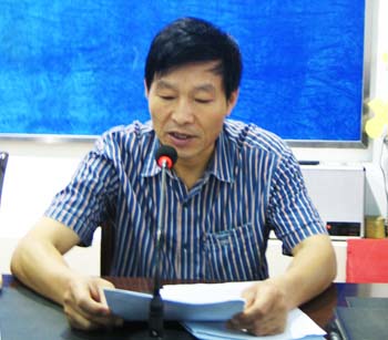 左圖為院長張孝文在會議上重點發(fā)言,右圖為書記呂榮讓傳達(dá)李局長報告