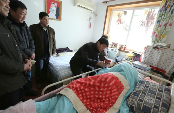 2013年1月21日,地礦總公司趙廷周總經(jīng)理一行來我單位慰問,在我單位總經(jīng)理張孝文、書記呂榮讓、工會主席曹從會陪同下,分別走訪慰問了譚希倬、耿建生兩名大病困難職工,帶去了米、面、油等生活用品,表達了誠摯的關(guān)懷,噓寒問暖,讓困難職工倍感溫暖。(張金環(huán) 文/圖)