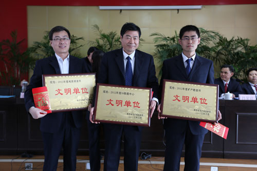 文明單位(左起:地調(diào)所、3S中心、礦勘所 ) 安全先進單位(資環(huán)所)