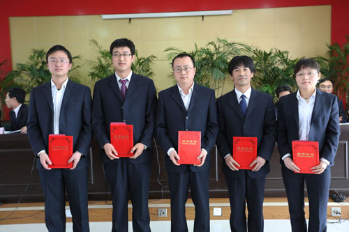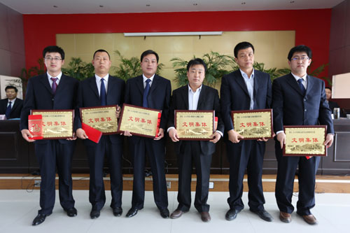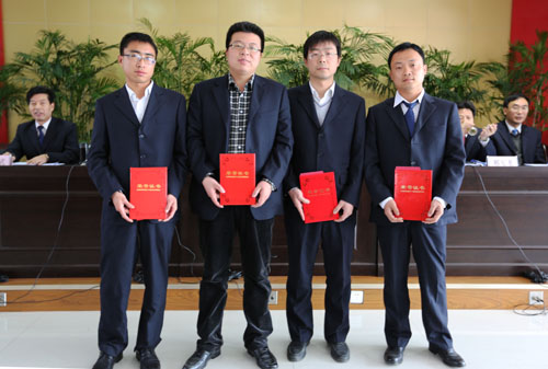 質(zhì)量先進個人(左起:黃崗、吳攀登、周田華、杜武剛 安全(治安)先進個人(左起:李鵬、張軍偉、張虎、暢鵬飛、王戰(zhàn)龍