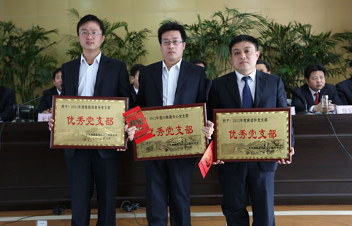 文明集體(左起:新疆1∶25萬托里縣幅區(qū)調(diào)修測項目組、 優(yōu)秀黨支部(左起:地質(zhì)調(diào)查所黨支部、3S數(shù)據(jù)中心黨支部、離退休黨支部)