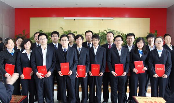 文明職工(前排左起:許革新 劉春華 唐益培 楊永鋒 姚勝 季春 優(yōu)秀黨員(左起:張文峰 馮曉強 陳輝 任旭亮 董利鴿)