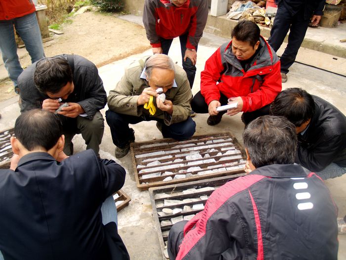 10月11日,時(shí)值深秋,漢中寧強(qiáng)冷家溝,秋雨淅瀝,寒風(fēng)瑟瑟。我院院長邢憲龍、總工程師趙長纓會(huì)同物化探隊(duì)隊(duì)長王新坪、礦業(yè)開發(fā)工貿(mào)公司總經(jīng)理王興國、漢中地質(zhì)大隊(duì)副總工程師陳少鋒風(fēng)塵仆仆趕到項(xiàng)目。這已經(jīng)是邢憲龍?jiān)洪L今年以來第四次來項(xiàng)目。由于受到多方關(guān)注,區(qū)研院人深感肩頭擔(dān)子不輕,責(zé)任重大,決心奮力一搏,交出滿意答卷。為了早日解決錯(cuò)綜復(fù)雜的地質(zhì)難題,使項(xiàng)目擺脫困局,破繭而出,化蝶高飛,區(qū)研院領(lǐng)導(dǎo)和同志們一直在苦思對(duì)策。汽車在崎嶇的山路上顛簸了幾個(gè)小時(shí),一行人于早上10點(diǎn)趕到位于山區(qū)的項(xiàng)目駐地。大家不顧舟車勞頓,立即投入工作。邢憲龍?jiān)洪L一行在駐地詳細(xì)聽取了項(xiàng)目負(fù)責(zé)楊春輝的工作量完成、工作進(jìn)展情況匯報(bào),同時(shí)認(rèn)真查看了地質(zhì)圖、鉆探施工圖等。而后漢中地質(zhì)大隊(duì)陳少鋒副總工程師帶著專家們風(fēng)風(fēng)火火趕來。大家顧不上握手寒暄,邢院長便招呼他:“來,先看看地形圖……”。初步了解工區(qū)地質(zhì)情況后,一行人一起上山尋找解決方案,工區(qū)山高溝深,道路崎嶇,路面濕滑,荊棘密布。邢憲龍?jiān)洪L走在最前面,用手撥開層層荊棘,冒著嚴(yán)寒給專家們領(lǐng)路,“你們可是我們請(qǐng)來的良醫(yī),一定要會(huì)診好這個(gè)項(xiàng)目!”。大家一同查看了探槽,研究了礦體蝕變情況及構(gòu)造發(fā)育情況。每發(fā)現(xiàn)一個(gè)重要線索,專家就停下腳步,用地質(zhì)錘和放大鏡仔細(xì)研究。臨近中午,風(fēng)突然大起來,天空飄起雨絲,氣溫下降到10攝氏度以下,人們說話時(shí)口中都冒著白氣,大家相互攙扶防止滑倒。我院總工辦趙平甲主任穿著單衣在寒風(fēng)中瑟瑟發(fā)抖,同志們開玩笑說冷家溝真是冷得名不虛傳。在存放巖芯的老鄉(xiāng)家的院子中,大家觀看了巖芯標(biāo)本,展開了對(duì)比分析研究。回到駐地后,召開了研討會(huì)。專家指出,冷家溝所在地區(qū)是陜西重要的成礦帶,有強(qiáng)烈的勘查標(biāo)志,是多年來成礦非常好的地區(qū)。專家建議,要進(jìn)一步推進(jìn)找礦工作,研究控礦條件,尋找成礦規(guī)律,擴(kuò)大已有成果。在今后的工作中,應(yīng)重點(diǎn)解剖一塊已知區(qū)域,增加化探及采樣工作,及時(shí)開展新發(fā)現(xiàn)異常的查證,適當(dāng)重砂取樣,重視研究礦體走向及連續(xù)性問題。邢憲龍?jiān)洪L對(duì)專家們的指導(dǎo)表示感謝,鼓勵(lì)地質(zhì)隊(duì)員們堅(jiān)定信心,攻堅(jiān)克難,奮勇拼搏,爭取早日取得找礦重大突破。