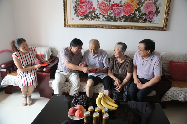 9月1日,在紀(jì)念抗日戰(zhàn)爭(zhēng)暨世界反法西斯戰(zhàn)爭(zhēng)勝利70周年即將來臨之際,總公司離退所主任李崇勇、區(qū)研院黨委書記宋化清、紀(jì)委書記張金環(huán)一同看望慰問了我院的抗戰(zhàn)老兵葛振杰,與他促膝長(zhǎng)談,詳細(xì)詢問他的身體狀況和生活情況,認(rèn)真傾聽老英雄講述了當(dāng)年的英勇事跡,給他送去慰問金及榮譽(yù)勛章,并向他致以節(jié)日的問候、崇高的敬意,表示國(guó)家和人民不會(huì)忘記抗戰(zhàn)老兵,祝他健康長(zhǎng)壽、晚年幸福。(白宏偉/文圖)