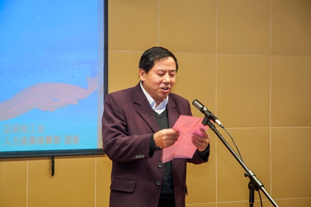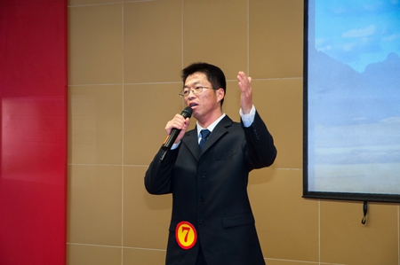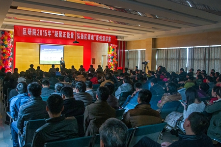 開(kāi)場(chǎng)前,院長(zhǎng)邢憲龍發(fā)表了熱映洋溢的元旦致辭,黨委書(shū)記宋化清宣讀了比賽評(píng)分辦法。在院工會(huì)精心策劃、組織協(xié)調(diào)、指導(dǎo)幫助下,13份原創(chuàng)稿件、13名選手精彩呈現(xiàn),從愛(ài)崗敬業(yè)、工作感悟、精神傳承、工作見(jiàn)聞等不同角度、不同層面,抒發(fā)了對(duì)單位的真摯情感、對(duì)事業(yè)的執(zhí)著追求及對(duì)美好明天的展望,充分展現(xiàn)了區(qū)研院干部職工無(wú)私奉獻(xiàn)、銳意進(jìn)取的崇高品質(zhì)和精神風(fēng)貌。選手們以豐富的肢體語(yǔ)言、真摯的情感,聲情并茂地詮示了區(qū)研院的企業(yè)精神,或從容淡定、或慷慨激昂、或大方得體,個(gè)個(gè)意氣風(fēng)發(fā),英姿颯爽,充滿(mǎn)正能量的演講贏得了現(xiàn)場(chǎng)評(píng)委和觀眾們陣陣掌聲和贊嘆聲。演講活動(dòng)中,精彩紛呈的文藝節(jié)目充分活躍了現(xiàn)場(chǎng)氣氛,恰當(dāng)?shù)貙⒄麄€(gè)比賽的“正能量”、“區(qū)調(diào)精神”進(jìn)一步烘托與升華,相得益彰,產(chǎn)生了良好的視聽(tīng)效果,觸動(dòng)了每位觀眾的心靈。武國(guó)柱老師也受邀擔(dān)當(dāng)了評(píng)委,他感嘆地說(shuō),“在社會(huì)經(jīng)濟(jì)低迷的大背景下,區(qū)研院能形成如此氣候,實(shí)屬不易!”。區(qū)研院職工同志們也紛紛表示,“本次比賽很受觸動(dòng)和鼓舞!”