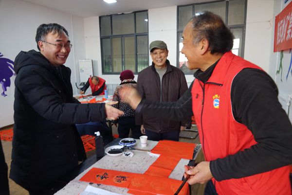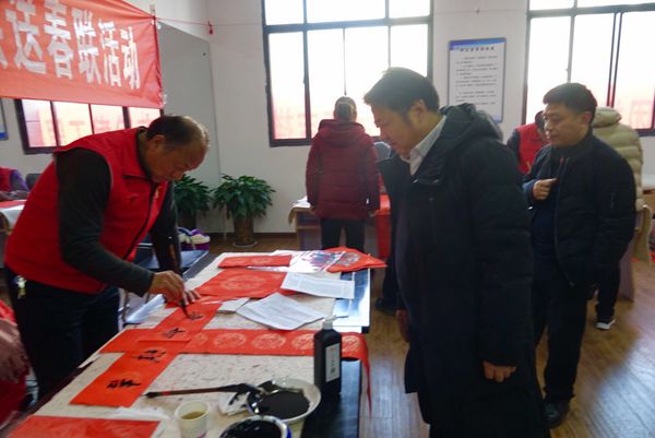 老干部書畫志愿者個(gè)個(gè)神彩奕奕、氣宇軒昂、充分展示了老干部藝術(shù)家的時(shí)代風(fēng)采.近300幅春聯(lián)行云流水、栩栩如生,飽含著對(duì)中華民族偉大復(fù)興中國(guó)夢(mèng)的憧憬和對(duì)新時(shí)代輝煌成就的謳歌與贊美,春聯(lián)既有喜迎金豬辭舊迎新的美好愿景,也有歌頌黨、歌頌地礦事業(yè)的美好詩(shī)句,更有歌頌偉大祖國(guó)、人民幸福安居樂(lè)業(yè)的詩(shī)情畫意.春聯(lián)不僅書法功底神韻,而且是對(duì)地礦人無(wú)悔人生的真實(shí)寫照?;顒?dòng)現(xiàn)場(chǎng),雖然數(shù)九嚴(yán)寒,但卻洋溢著春天的氣息.7位書畫家獨(dú)具匠心,揮毫潑墨,為我院職工群眾奉獻(xiàn)了藝術(shù)享受和新春佳節(jié)最美好的祝福,深受廣大職工群眾和離退休人員的熱愛和贊美!